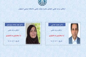 1- آقاي دكتر محمد خدائي - عضو محترم هيأت علمي دانشكده فني و مهندسي گلپايگان - ارتقاي علمي از استادياري به دانشياري